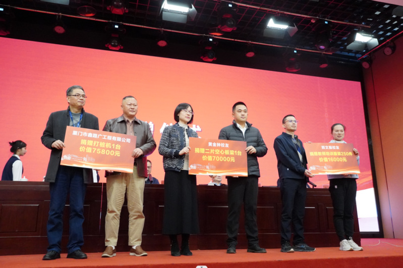 會(huì)上,鐘嘉升校友、黃金鐘校友、鄭文振校友分別向?qū)W校捐贈(zèng)了教學(xué)實(shí)訓(xùn)設(shè)備等價(jià)值共計(jì)14.74萬(wàn)元。