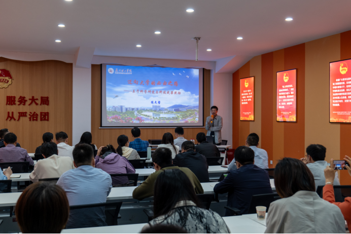 陳文哲教授首先做題為“邁向大學的必由之路——關于科學研究與科技成果獎勵”的報告,從青年教師成長、產(chǎn)學研合作、科技成果積累與報獎、科研與教學之間的關系等方面做了精彩分享,并勉勵青年教師勇于投身產(chǎn)學研實踐,組建校企科技攻關團隊,在科研實踐中不斷成長。