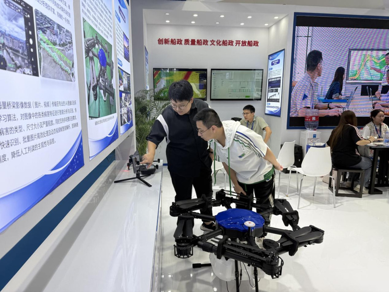 我院受邀參展并在主賓館設(shè)立展區(qū),重點(diǎn)展示了一系列兼具技術(shù)實(shí)力與應(yīng)用價(jià)值的成果,包括傳承船政文化的趕繒船結(jié)構(gòu)復(fù)原模型,聚焦智能裝備領(lǐng)域的 AIS 交通流分析系統(tǒng)、Ener16p 農(nóng)業(yè)植保無(wú)人機(jī)、無(wú)人機(jī)協(xié)同指揮系統(tǒng)、橋梁無(wú)人機(jī)巡檢及AI 病害識(shí)別系統(tǒng)等,豐富多元的展品吸引了眾多參會(huì)觀眾駐足咨詢、互動(dòng)體驗(yàn)并拍照記錄。