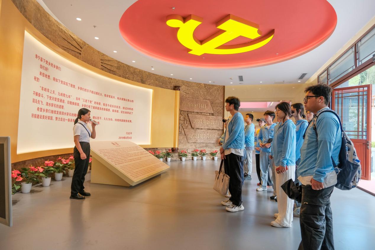 實(shí)踐團(tuán)首站來到習(xí)近平總書記“三進(jìn)下黨”的壽寧縣下黨鄉(xiāng)。在鸞峰橋上,隊(duì)員們聆聽當(dāng)?shù)馗刹恐v述習(xí)近平總書記當(dāng)年跋山涉水、訪貧問苦的感人故事;在“難忘下黨主題館”通過一幅幅珍貴照片、一件件歷史實(shí)物,深入了解下黨鄉(xiāng)從“五無鄉(xiāng)鎮(zhèn)”到“小康樣板”的華麗蝶變。