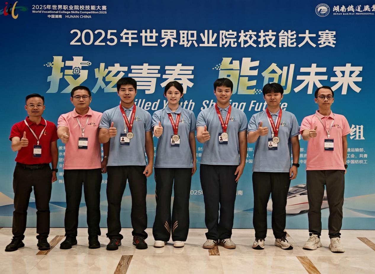 2025年8月27日至31日,2025年世界職業(yè)院校技能大賽軌道交通運(yùn)輸賽道總決賽爭(zhēng)奪賽在湖南省株洲市成功舉辦。我院軌道交通學(xué)院學(xué)子彭溢、鄭家鎮(zhèn)、李瑋杰、王希盈四位同學(xué)組成代表隊(duì),憑借扎實(shí)的專(zhuān)業(yè)功底、默契的團(tuán)隊(duì)協(xié)作和頑強(qiáng)的拼搏精神,最終從全國(guó)155支隊(duì)伍中成功突圍,斬獲本次大賽銀獎(jiǎng),為學(xué)院贏得了榮譽(yù)。