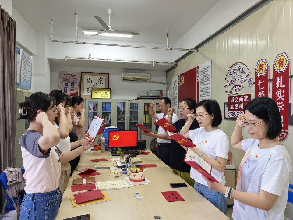 活動(dòng)中,在黨總支書(shū)記陳火城的領(lǐng)誓下,全體黨員重溫入黨誓詞,以莊嚴(yán)儀式回溯初心使命。蔣曉紅代表結(jié)合教育崗位實(shí)踐發(fā)表感言,表示將以立德樹(shù)人為己任,將入黨誓言轉(zhuǎn)化為培養(yǎng)時(shí)代新人的實(shí)際行動(dòng)。活動(dòng)還特別設(shè)置“紅色基因代代傳”環(huán)節(jié),播放支部此前赴高蓋山烈士墓園開(kāi)展清明祭掃的影像資料,引導(dǎo)黨員在歷史與現(xiàn)實(shí)的聯(lián)結(jié)中堅(jiān)定理想信念。