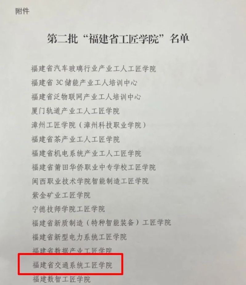 近日,福建省總工會(huì)公布16家第二批省級(jí)工匠學(xué)院名單。我院作為福建省唯一一所覆蓋海陸空軌“四位一體”9大現(xiàn)代綜合交通專業(yè)集群的交通類職業(yè)院校,申報(bào)的“福建省交通系統(tǒng)工匠學(xué)院”被確定為第二批“福建省工匠學(xué)院”。