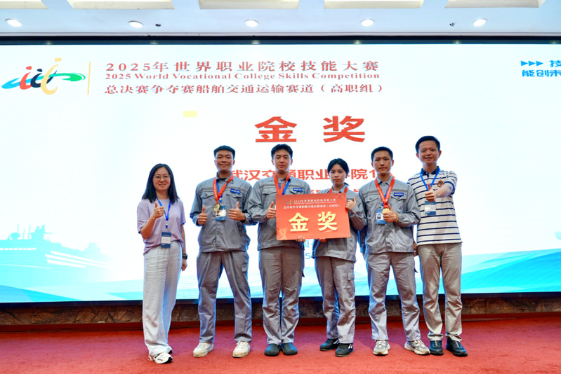 8 月 22 日至 25 日,2025 年世界職業(yè)院校技能大賽船舶交通運輸賽道(高職組)總決賽在武漢船舶職業(yè)技術(shù)學(xué)院舉行。全國 64 支代表隊同臺競技,我院航海學(xué)院學(xué)子組成的參賽團隊脫穎而出,勇奪金獎,這也是我院在 2025 年世校賽中斬獲的首個金獎。