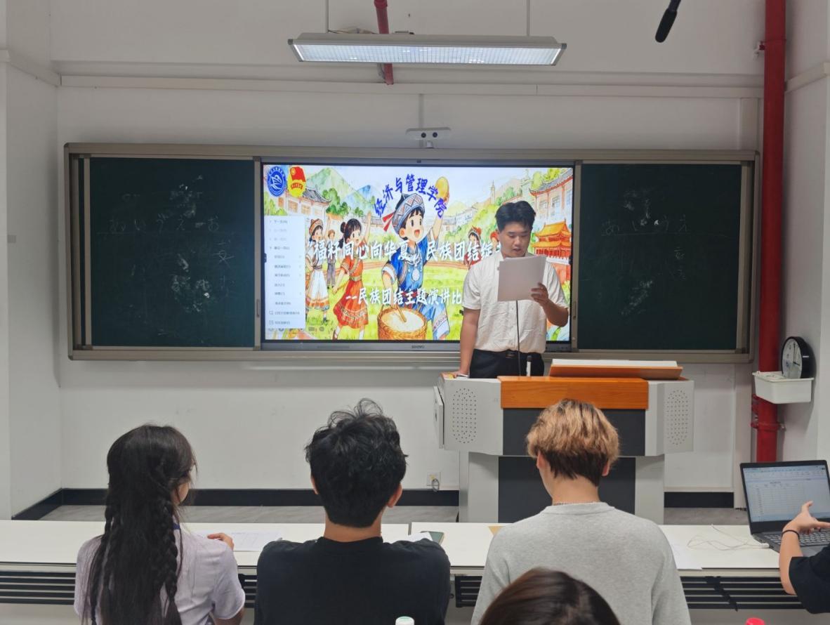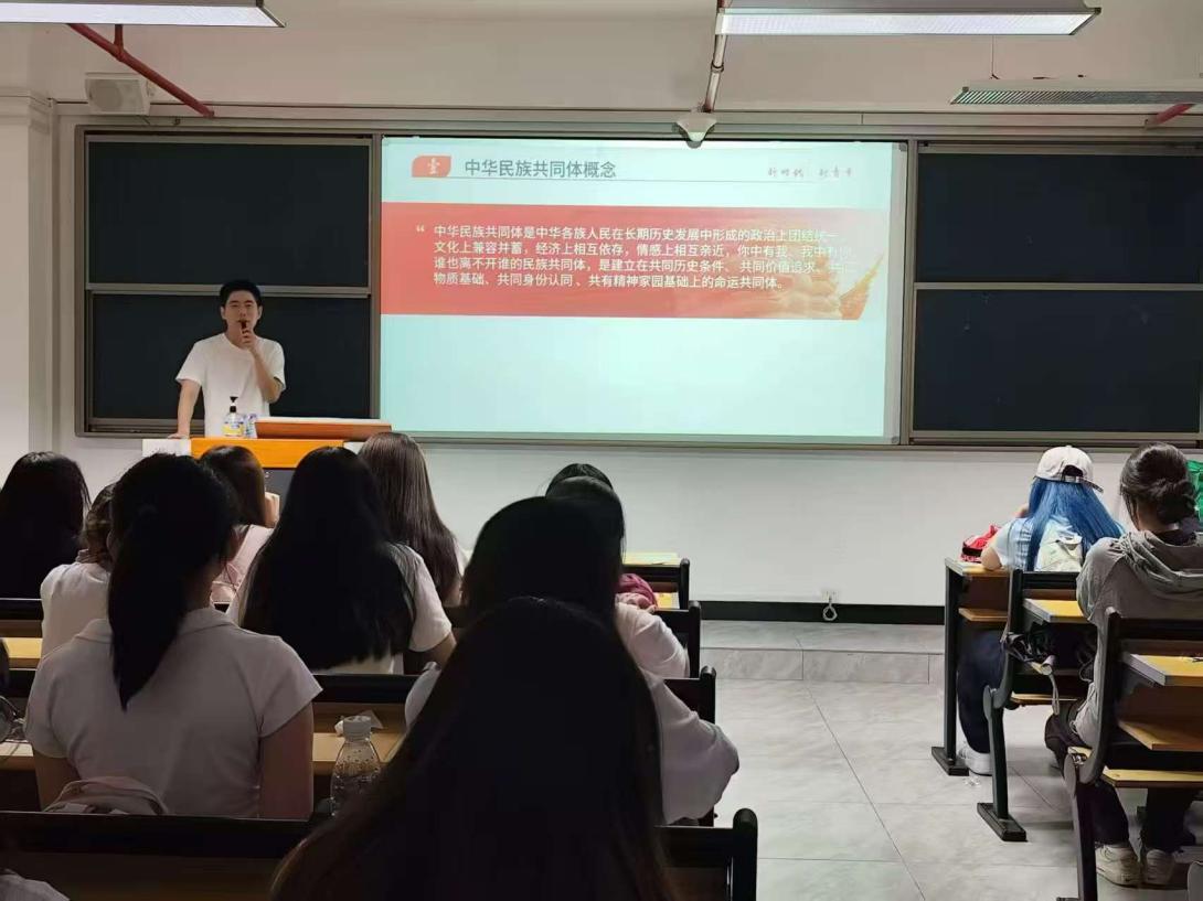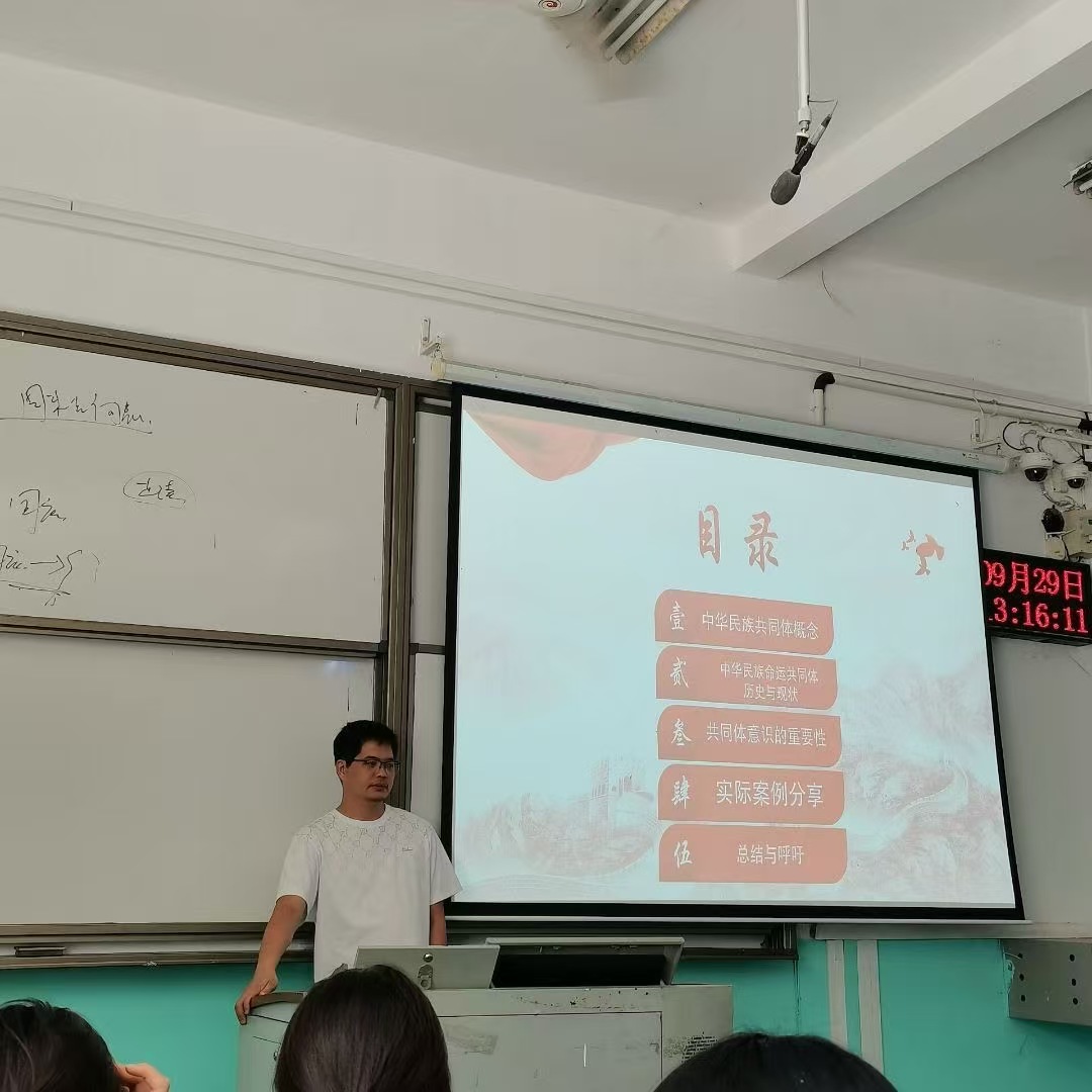 主題班會(huì)是本次活動(dòng)的開篇之作。班會(huì)上,由輔導(dǎo)員通過(guò) PPT 展示,向同學(xué)們介紹了我國(guó)各民族的分布、人口、語(yǔ)言、風(fēng)俗習(xí)慣等基本情況,讓同學(xué)們對(duì)我國(guó)的民族大家庭有了更全面的了解。各民族在相互學(xué)習(xí)、交流融合中形成的獨(dú)特風(fēng)貌和共同價(jià)值追求。隨后,來(lái)自不同民族的同學(xué)紛紛上臺(tái)分享自己的民族故事、風(fēng)俗習(xí)慣以及在與其他民族同學(xué)相處中的溫馨故事,現(xiàn)場(chǎng)氣氛溫馨而熱烈。通過(guò)本次班會(huì),同學(xué)們不僅增強(qiáng)了民族團(tuán)結(jié)意識(shí),豐富了民族文化知識(shí),還營(yíng)造了團(tuán)結(jié)和諧的校園氛圍。在今后的工作中,我們將繼續(xù)深入開展民族團(tuán)結(jié)教育活動(dòng),不斷創(chuàng)新活動(dòng)形式,豐富活動(dòng)內(nèi)容,努力提高民族團(tuán)結(jié)教育的實(shí)效性。同時(shí),我們也將積極引導(dǎo)同學(xué)們將民族團(tuán)結(jié)的精神轉(zhuǎn)化為實(shí)際行動(dòng),在學(xué)習(xí)和生活中,關(guān)心關(guān)愛各民族同學(xué),共同為實(shí)現(xiàn)中華民族偉大復(fù)興的中國(guó)夢(mèng)而努力奮斗。