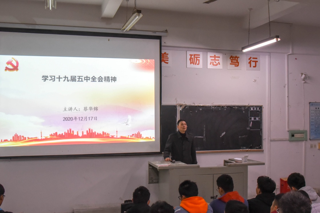 12月17日,學(xué)院黨總支書記蔡華錦在北區(qū)22號(hào)樓第二階梯教室作學(xué)習(xí)貫徹黨的十九屆五中全會(huì)精神宣講報(bào)告,汽車學(xué)院100多名學(xué)生參加報(bào)告會(huì)。