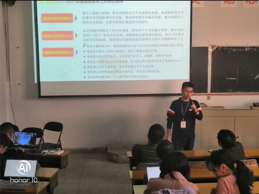 最后支部書記朱劍寶同志總結(jié)了2021年福建省教育工作會(huì)議精神和2021年全國兩會(huì)精神。