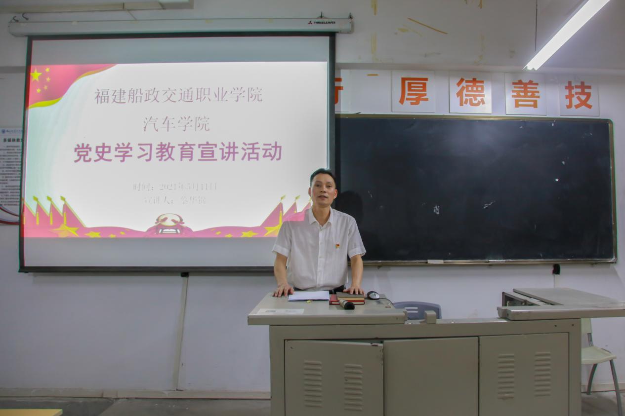 為慶祝中國共產(chǎn)黨建黨100周年,扎實推進黨史學(xué)習(xí)教育走深走實,營造濃郁的黨史學(xué)習(xí)氛圍,積極引導(dǎo)學(xué)生讀原著、學(xué)原文、悟原理,學(xué)史明理、學(xué)史增信、學(xué)史崇德、學(xué)史力行,達(dá)到黨史學(xué)習(xí)教育深入人心的效果。2021年5月11日,汽車學(xué)院黨總支書記蔡華錦在22號樓第三階梯教室開展黨史學(xué)習(xí)教育宣講活動,汽車學(xué)院93名入黨積極分子參加宣講活動。