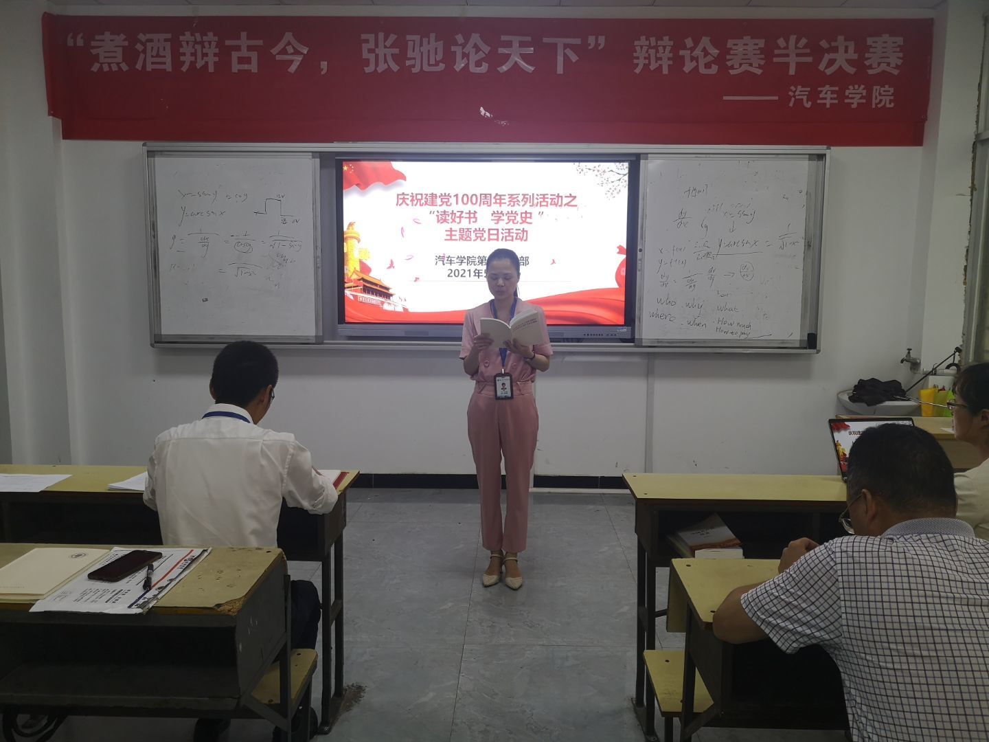 為深入學(xué)習(xí)貫徹習(xí)近平總書(shū)記在黨史學(xué)習(xí)教育動(dòng)員大會(huì)上的重要講話精神,按照市院黨史學(xué)習(xí)教育領(lǐng)導(dǎo)小組開(kāi)展“晨讀黨史,夜學(xué)檢察”活動(dòng)安排,5月15日,汽車學(xué)院第二黨支部開(kāi)展《論中國(guó)共產(chǎn)黨歷史》誦讀活動(dòng)。會(huì)議由第二黨支部副書(shū)記何建主持,第二黨支部全體黨員參加會(huì)議。