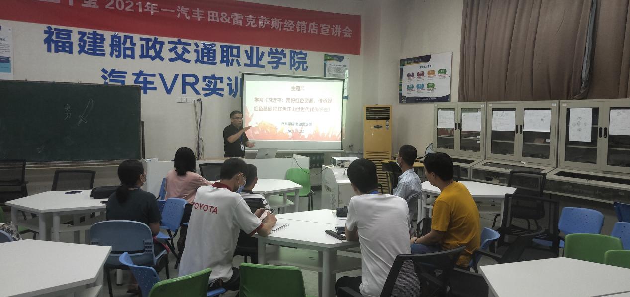 2021年9月22日下午在豐田教室,汽車學院第四黨支部副書記余庚主持召開專題學習會。