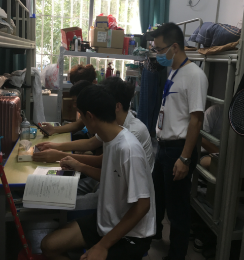 9月16日長安校區(qū)宿舍汽車學(xué)院第三黨支部書記和領(lǐng)導(dǎo)巡查學(xué)生上網(wǎng)課