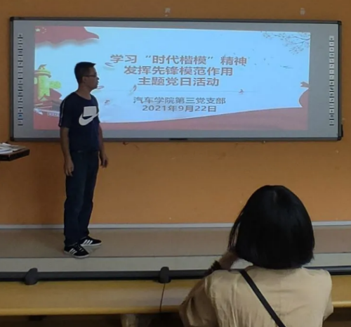 2021年9月10日以來由于我省發(fā)生新冠疫情,為確保學(xué)生身體健康及校園安定穩(wěn)定,保障大二學(xué)生的教學(xué)秩序和大三學(xué)生的頂崗實(shí)習(xí)安全,汽車學(xué)院第三黨支部黨員同心戰(zhàn)役,深入學(xué)生宿舍、教室和校園先鋒崗位,并于2021年9月22日開展了“學(xué)習(xí)時(shí)代楷模精神,發(fā)揮先鋒模范作用”的主題黨日活動(dòng)。
