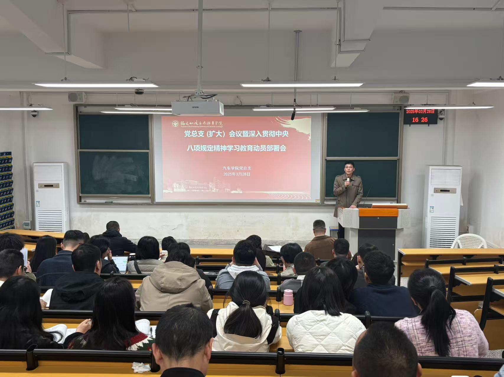 3月28日,汽車學(xué)院黨總支(擴大)會議在汽一階教室召開。會議認(rèn)真學(xué)習(xí)貫徹習(xí)近平總書記關(guān)于深入貫徹中央八項規(guī)定精神學(xué)習(xí)教育的重要講話和重要指示精神,傳達校黨委(擴大)會議暨深入貫徹中央八項規(guī)定精神學(xué)習(xí)教育部署會會議精神,布置學(xué)校學(xué)習(xí)教育工作方案,并動員部署學(xué)習(xí)教育工作。會議由學(xué)院黨總支書記蔡華錦主持,全體黨員參加會議。
