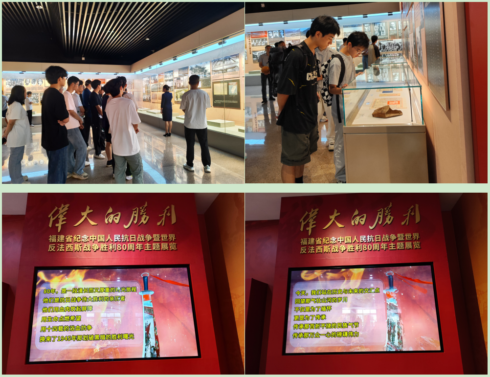 2025年9月28日9時(shí),汽車學(xué)院黨總支組織師生黨員、積極分子及學(xué)生代表共50人,前往福建省革命歷史紀(jì)念館,參觀由省委宣傳部主辦的“偉大的勝利——福建省紀(jì)念中國(guó)人民抗日戰(zhàn)爭(zhēng)暨世界反法西斯戰(zhàn)爭(zhēng)勝利80周年主題展”,通過沉浸式學(xué)習(xí)重溫抗戰(zhàn)歷史,厚植家國(guó)情懷。