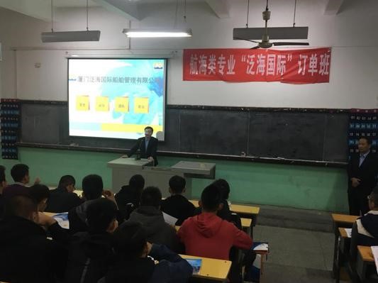 最后,廈門(mén)泛海國(guó)際船舶有限公司周永煌副總經(jīng)理分別與航海技術(shù)系江明光主任、輪機(jī)工程系陳清彬主任簽訂了訂單班培養(yǎng)協(xié)議。簽約儀式結(jié)束后,周永煌副總在航海樓東大教室面向2017級(jí)航海技術(shù)和輪機(jī)工程專(zhuān)業(yè)100余新生進(jìn)行企業(yè)宣講,現(xiàn)場(chǎng)氣氛熱烈,同學(xué)們積極與周永煌副總交流,了解用人單位情況。通過(guò)這一雙贏協(xié)議,使航海類(lèi)專(zhuān)業(yè)的辦學(xué)更具有針對(duì)性和專(zhuān)業(yè)性,有利于更好地培養(yǎng)出適合企業(yè)需要的緊缺專(zhuān)業(yè)技術(shù)人才。
