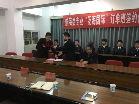 為了積極響應(yīng)國(guó)家關(guān)于加強(qiáng)學(xué)校和企業(yè)合作的號(hào)召,充分發(fā)揮校企雙方優(yōu)勢(shì),適應(yīng)國(guó)際船員勞務(wù)市場(chǎng)需要,滿(mǎn)足國(guó)內(nèi)外船東對(duì)航海人才需求,2019年12月6日下午,學(xué)院在校友樓四樓會(huì)議室舉行了由航海技術(shù)系江明光主任主持的針對(duì)航海類(lèi)專(zhuān)業(yè)的“泛海國(guó)際”訂單班簽約儀式。學(xué)院副院長(zhǎng)高汝武、廈門(mén)泛海國(guó)際船舶管理有限公司副總經(jīng)理周永煌、教務(wù)處處長(zhǎng)陳朝慰、航海技術(shù)系主任江明光、輪機(jī)工程系主任陳清彬、航海技術(shù)系黨總支書(shū)記劉群勇以及各學(xué)生代表參加。