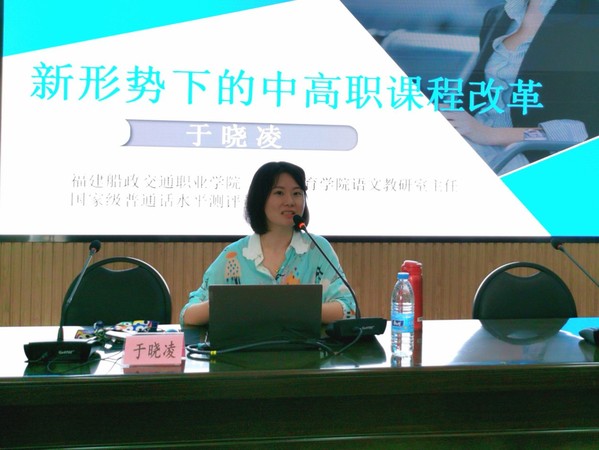 于曉凌老師以目前社會(huì)熱議的“教學(xué)改革”為中心,開設(shè)了主題為“新形勢(shì)下的中高職課程改革”的講座,主要從中高職課程改革必然性、國內(nèi)外課程改革現(xiàn)狀、以點(diǎn)帶面——以高職語文為例解析新形勢(shì)下的中高職公共基礎(chǔ)課程改革趨勢(shì)這三個(gè)大方向,向在場(chǎng)教師介紹了中高職課程改革的必然性和重要性。講座氣氛活躍,引起在場(chǎng)教師們共鳴。