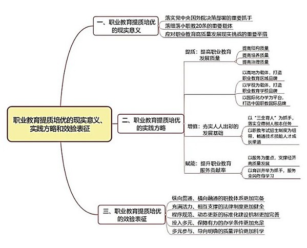 所謂提質(zhì),至少要從教育結(jié)構(gòu)、人才培養(yǎng)、治理水平三方面提升職業(yè)教育質(zhì)量。結(jié)構(gòu)質(zhì)量的核心是完善體系建設(shè),人才培養(yǎng)質(zhì)量的核心是推進(jìn)“三教”改革,治理質(zhì)量的核心是構(gòu)建多元參與的質(zhì)量治理格局。