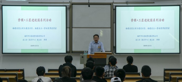 為大力弘揚勞動光榮、技能寶貴、營造“勞模+工匠”精神育人的校園新文化,培養(yǎng)師生高度的文化自信和文化自覺,結(jié)合安全技術(shù)與管理專業(yè)群實際發(fā)展需求,土木工程學(xué)院于2020年11月11日邀請了福州市水務(wù)投資發(fā)展有限公司總工辦副主任李濤來校開設(shè)講座活動。土木工程學(xué)院市政教研室全體教師、市政工程技術(shù)專業(yè)學(xué)生共150余人聆聽了報告,報告會由市政教研室主任魏天云主持。