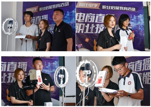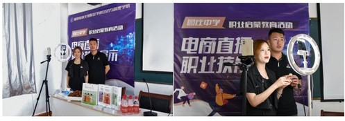 電商直播作為網(wǎng)絡(luò)直播的商業(yè)化應(yīng)用,逐漸成為擴(kuò)大內(nèi)需、助推內(nèi)循環(huán)的新引擎。在本次活動(dòng)中,2019級(jí)市場(chǎng)營(yíng)銷(xiāo)1班許明澤與鄧陳丹兩位學(xué)生通過(guò)現(xiàn)場(chǎng)搭建電商直播間進(jìn)行了電商直播職業(yè)技能的展示。在同學(xué)們的眼中直播的設(shè)備與場(chǎng)景是那么得新奇、有趣,在他們的心中埋下的職業(yè)與夢(mèng)想的種子。通過(guò)觀看哥哥姐姐們的直播展示,臺(tái)下的同學(xué)們興奮不已,躍躍欲試,爭(zhēng)先恐后地上臺(tái)參與到直播體驗(yàn)中。在兩位主播的耐心引導(dǎo)下,參與的同學(xué)們自信地模仿著,直觀地了解職業(yè)教育、認(rèn)識(shí)職業(yè)教育、體驗(yàn)職業(yè)教育的精彩,切身感受到職業(yè)教育的魅力。