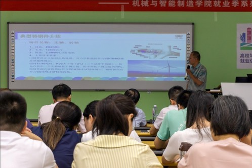 活動伊始,陳水發(fā)副院長代表機(jī)械學(xué)院對鄭建斌總工的到來表示了熱烈的歡迎,接著鄭總從“興航重工簡介、典型鑄鋼件介紹、與機(jī)械學(xué)院產(chǎn)學(xué)研合作”三個方面做了報告。首先鄭總給我們詳細(xì)介紹了福建興航重工有限公司概況、產(chǎn)品類型、企業(yè)榮譽(yù)和企業(yè)目標(biāo)以及企業(yè)開展的科研研究工作等概況。