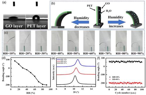 近年來(lái),智能致動(dòng)器由于其驅(qū)動(dòng)方式多樣、形變類型多樣、應(yīng)用廣泛等特點(diǎn),已成為智能材料的研究熱點(diǎn)。然而,只能由單一刺激驅(qū)動(dòng)的傳統(tǒng)雙層致動(dòng)器的應(yīng)用領(lǐng)域受到極大限制。我校機(jī)械與智能制造學(xué)院研究團(tuán)隊(duì)致力于智能材料和智能制造領(lǐng)域相關(guān)裝備和器件的研發(fā)和應(yīng)用研究工作,依托省級(jí)智能裝備應(yīng)用技術(shù)協(xié)同創(chuàng)新中心,聯(lián)合福州大學(xué)、福建工程學(xué)院、廈門理工學(xué)院科研團(tuán)隊(duì)開(kāi)展了諸多有意義的研究工作。本次公開(kāi)發(fā)表的研究基于氧化石墨烯(GO)和聚對(duì)苯二甲酸乙二醇酯(PET)復(fù)合材料的雙響應(yīng)和雙向彎曲致動(dòng)器,旨在開(kāi)發(fā)多響應(yīng)執(zhí)行器以拓寬驅(qū)動(dòng)器的應(yīng)用領(lǐng)域。