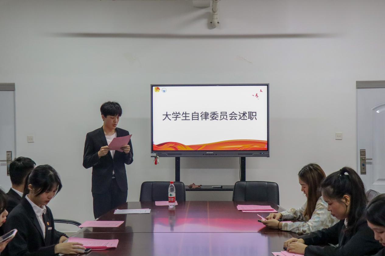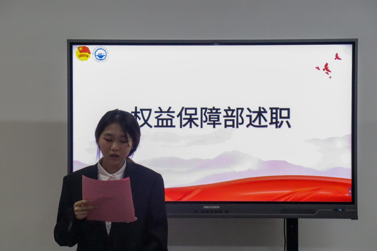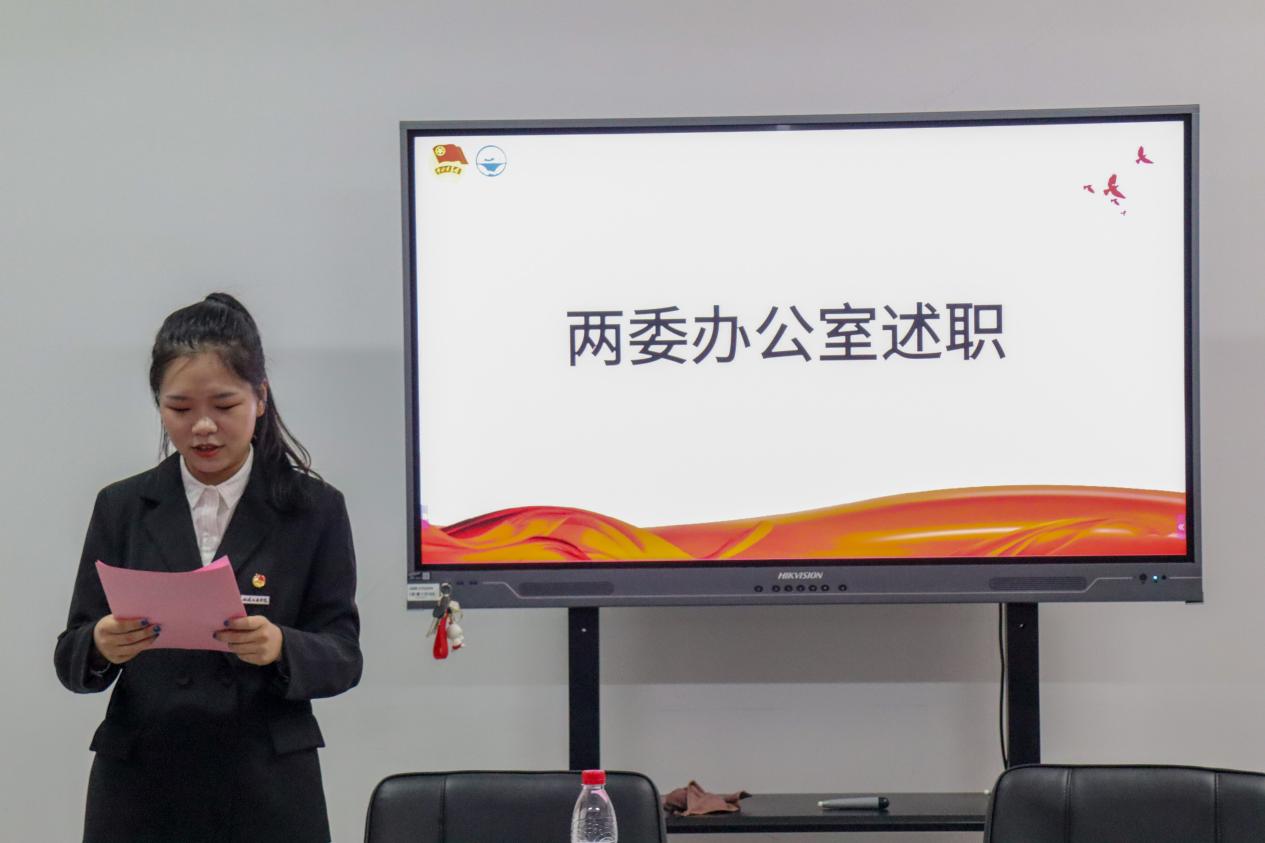 接下來,學(xué)院分團委兼職副書記(學(xué)生)、組織部、兩委綜合辦公室、新媒體、學(xué)生權(quán)益保障部……負(fù)責(zé)人圍繞各部門工作重點依次進行述職匯報。全體述職人員圍繞前期工作總結(jié)、工作中的不足及下一步工作展望進行匯報。大家對一學(xué)期的工作進行反思和總結(jié),嚴(yán)格對照學(xué)生干部標(biāo)準(zhǔn),總結(jié)經(jīng)驗,查擺不足,從嚴(yán)從實展現(xiàn)作為學(xué)生干部的擔(dān)當(dāng)作為、職責(zé)使命。