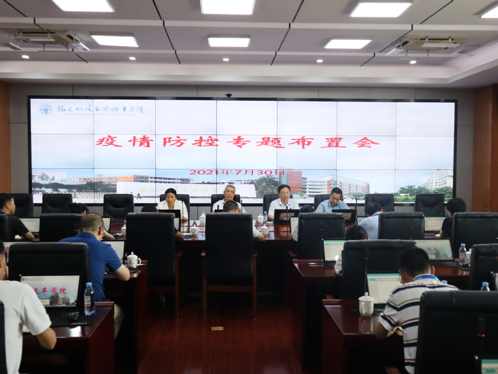 7月30日,學院召開疫情防控工作布置會。黨委副書記、院長陳錦輝主持會議,黨委書記張海明、紀委書記張輝、副院長張祖柱,各部門、二級學院負責人出席會議。