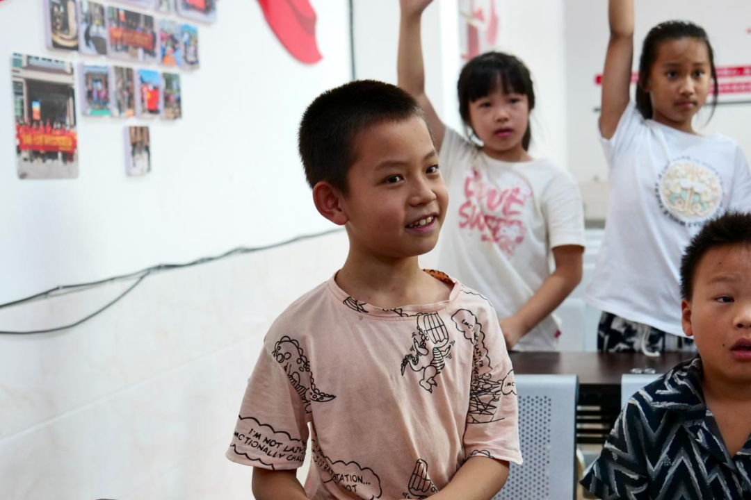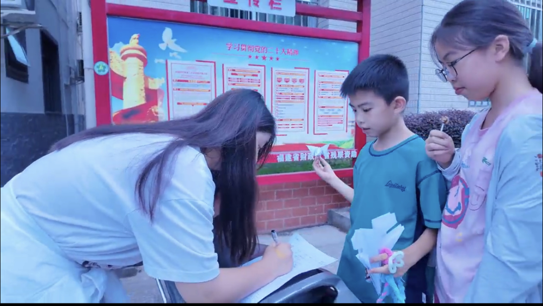 圖為實(shí)踐團(tuán)在三溪鄉(xiāng)溪源村對(duì)小朋友進(jìn)行調(diào)查問(wèn)卷