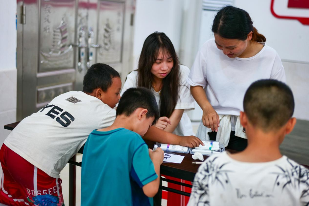 借助此次實(shí)踐機(jī)會(huì),實(shí)踐團(tuán)隊(duì)成員結(jié)合溪源村的百年油茶文化特色及自身專(zhuān)業(yè)特點(diǎn),開(kāi)展了“油茶韻傳鄉(xiāng)田,美育筑夢(mèng)未來(lái)”為主題的“三下鄉(xiāng)”活動(dòng)。