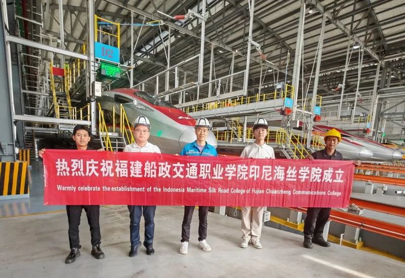 近日,在福建省教育廳的指導(dǎo)支持下,福建船政交通職業(yè)學(xué)院分別與印尼中國高速鐵路有限公司、印尼阿拉扎大學(xué)孔子學(xué)院及北京全路通信信號研究設(shè)計院集團有限公司共建的“印尼海絲學(xué)院”揭牌儀式于印尼首都雅加達(dá)成功舉行。印尼中國高速鐵路有限公司中方執(zhí)行董事張明、財務(wù)董事楊東,印尼阿拉扎大學(xué)孔子學(xué)院中方院長王大昕,北京全路通信信號研究設(shè)計院集團項目部負(fù)責(zé)人,以及福建船政交通職業(yè)學(xué)院軌道交通學(xué)院副院長陳宏意出席活動,相關(guān)企業(yè)員工代表和院校師生代表參加活動。